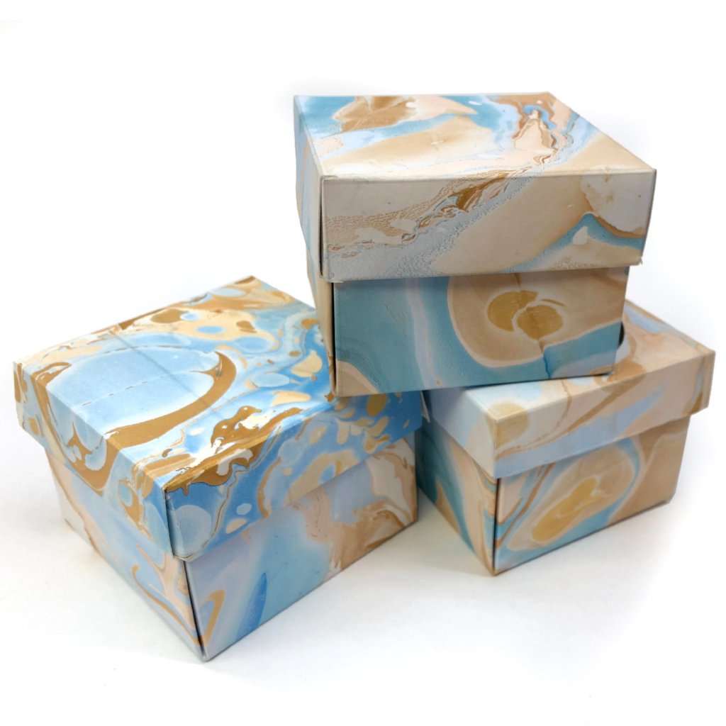 Our DIY Marbling gift boxes come in two-pieces, A removable lid and a sturdy base . Perfect for Party favors or craft projects and more.