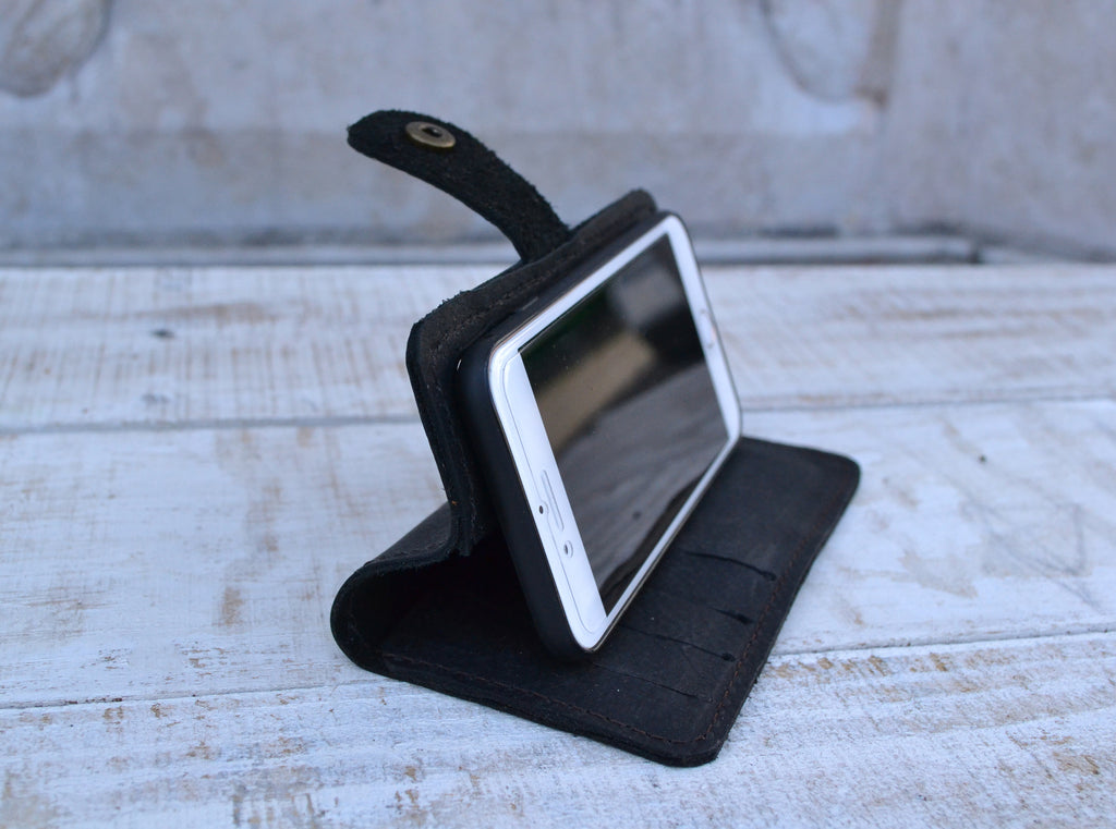 Black distressed Leather iPhone 8/7 Case, Wallet Case - OakPo Paper Co.