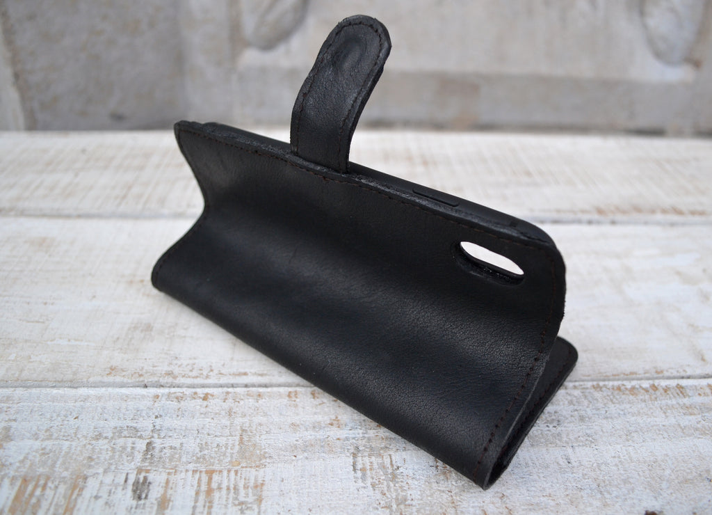 This leather phone case is a functional phone case/wallet. The leather we use is hand picked extras from other leather manufacturers.