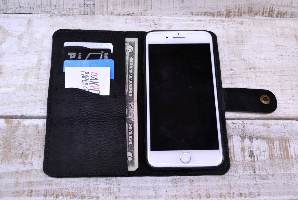 This leather phone case is a functional phone case/wallet.