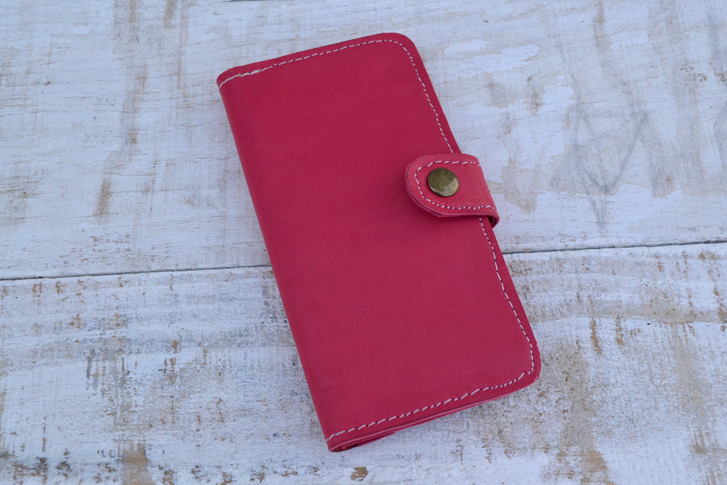 This leather phone case is a functional phone case/wallet. The leather we use is hand picked extras from other leather manufacturers.