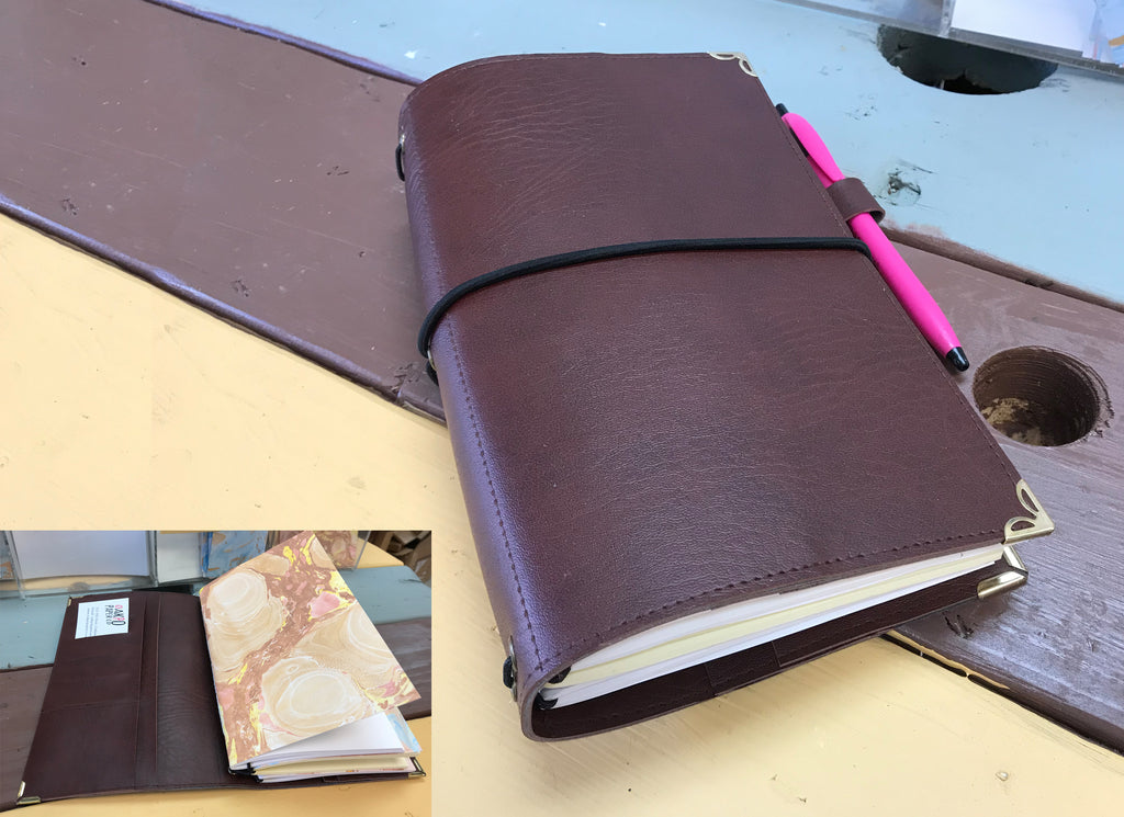 This handmade faux leather notebook comes with four inserts notebooks. Each component is hand constructed, including the unique marbling. These notebooks are ideal for journaling, sketching and customizable planners.