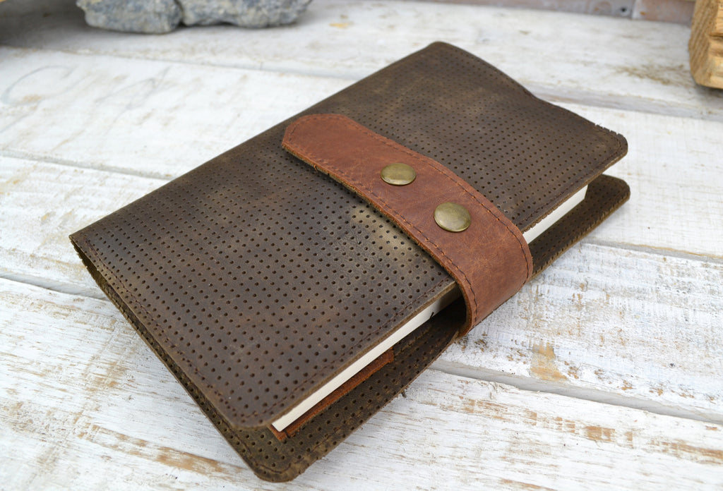 -- Soft leather cover is hand stitched. Dimension: 6''x9'' (when closed)