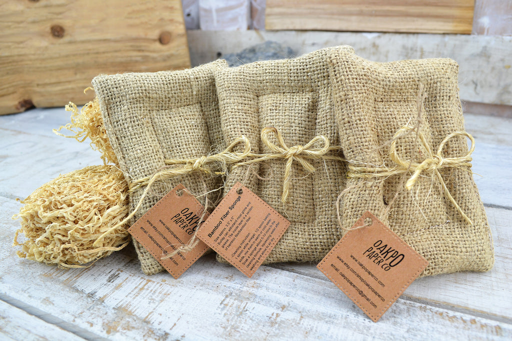 Zero Waste Reusable Sponge is made of burlap and a section of bamboo fiber. Our scrubbers are ideal plastic-free alternatives to disposable sponges and can be easily cleaned and reused. We use these in our own homes! Ideal for daily dish washing, counter scrubbing or any other greasy task.