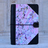 Our handmade journals come with 4 travelers inserts notebooks. Each component is hand constructed, including the unique marbling. These notebooks are ideal for sketching, journaling, and customizable planners.