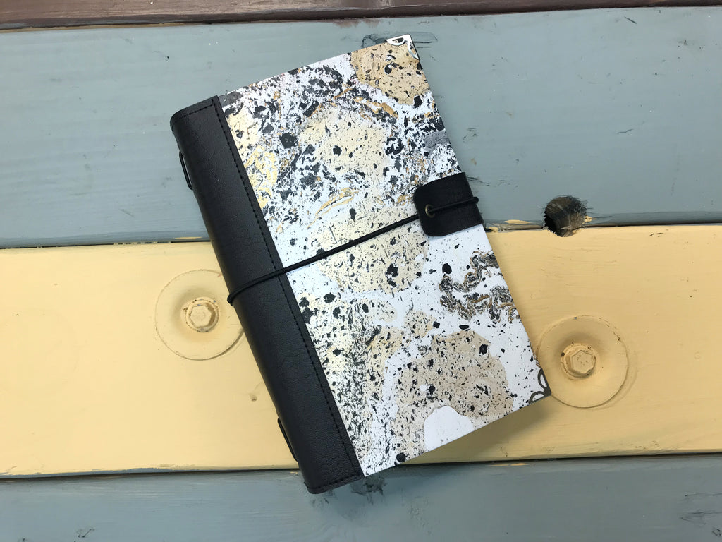 Hand marbled traveler's notebook. with 3 insert notebooks and 1 smaller passport notebook